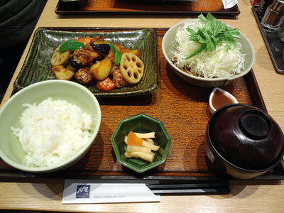 【鶏と野菜の黒酢あん定食 790円】