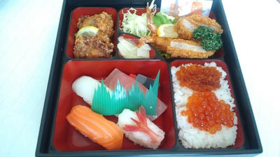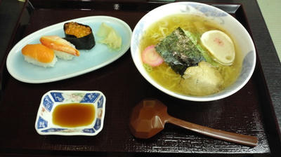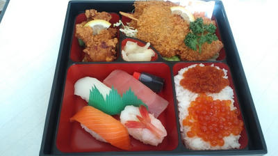 で、昼飯がなかったので、篠路にある「すし王」から出前とってみました。