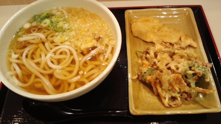 【かけうどん大盛り+野菜かき揚げ+とり天 500円くらい】