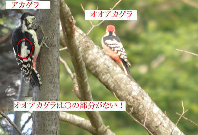 アカゲラは逆ハの字みたくなってるんだけどオオアカゲラはそれがない。