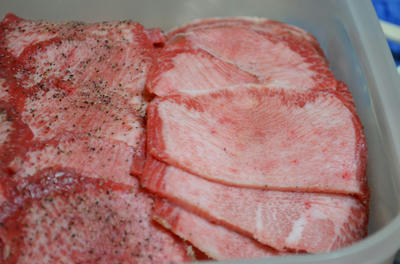 右の方は霜降り牛タンだそうで、店で食うと超高いらしい…。