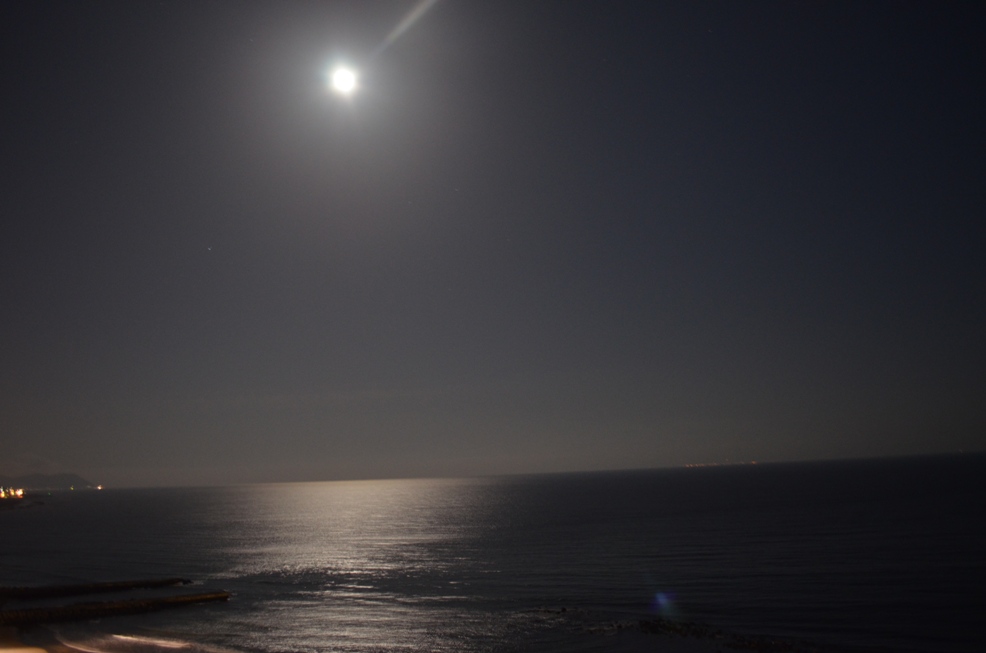 満月が海に反射して、なんとも幻想的な感じ。